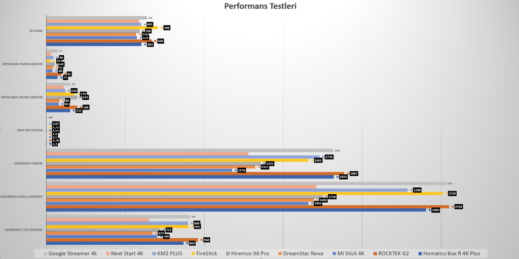 Cihazın benchmark testleri aşağıdaki gibidir.